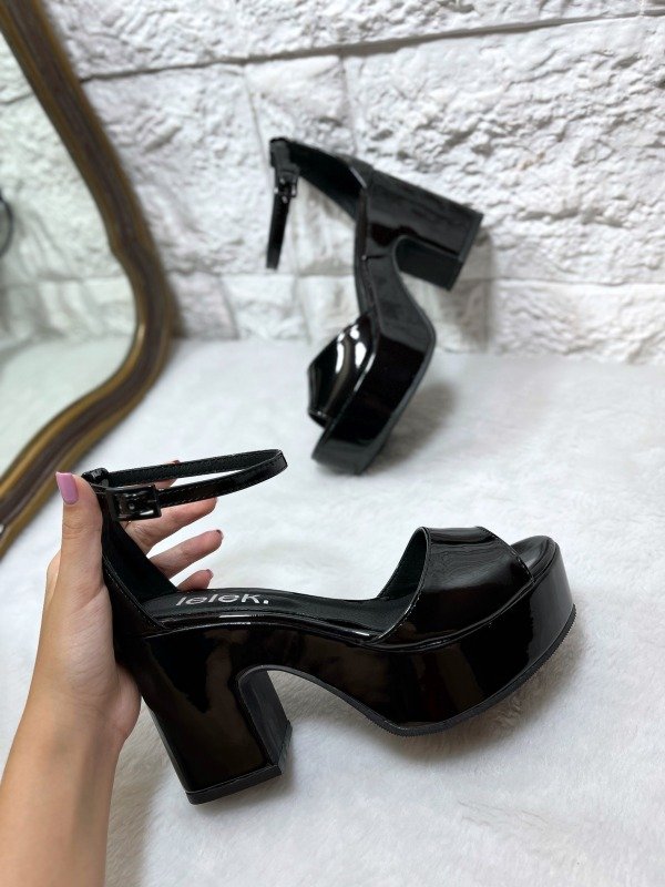 Material ecocuero y charol negro.
