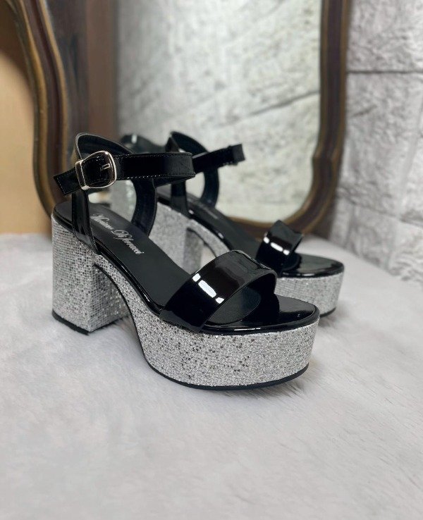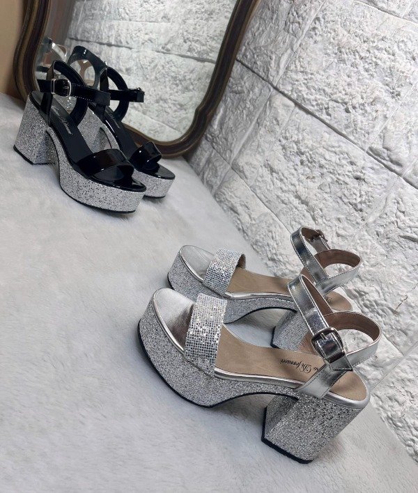 Colores gliter plata y charol negro con gliter plata.